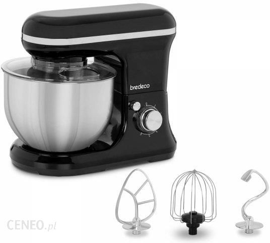 Robot kuchenny to poręczne urządzenie wyposażone w planetarny układ mieszający. Za jego pomocą możesz wyrobić ciasto na pierogi oraz chlebowe, zmiksować wybrane składniki czy ubić pianę białek lub bitą śmietanę. Mikser posiada klasyczny design, więc będzie pasował do wystroju kuchni w każdym domuPARAMETRY:Napięcie znamionowe 230 VCzęstotliwość 50 HzMoc 1200 WPojemność miski 5 lWymiary misy Ø23 x 18 cmWymiary (DxSxW) 39,00 x 23,00 x 31,50 cmWaga 4,50 kgWymiary wysyłki (DxSxW) 42,50 x 26,00 x 35,50 cmWaga wysyłki 5,20 kgWszechstronność urządzenia to zasługa planetarnego układu mieszającego, która pozwala na solidne ugniatanie miksowanych produktów. Niezależnie od tego, jakie ciasto będziesz chciał przygotować, urządzenie z układem planetarnym poradzi sobie z tym zadaniem. Taki robot to doskonały wybór dla domowych kuchni6-biegowy silnik o mocy 1200 W cechuje się wytrzymałością i może znieść nawet bardzo częste, codzienne użytkowanie. Solidna konstrukcja robota planetarnego jest odporna na pękanie. Model BCPM-1200B pozwala na mieszanie i zagniatanie z 6 różnymi prędkościami oraz jest wyposażony w opcję „Pulse”Łatwa obsługa robota kuchennego wynika z zastosowania tylko jednego pokrętła. Za jego pomocą ustawisz wszystkie parametry potrzebne do przygotowania wybranego dania. Pokrywa posiada specjalny otwór służący do dodawania dodatkowych składników lub przypraw do przygotowywanej potrawy. Tym sposobem nie musisz ściągać całej pokrywy za każdym razem, gdy chcesz doprawić sos lub zupę. Blender został również wyposażony w wielofunkcyjny mechanizm odblokowującyCECHY:Mikser stojący w kolorze czarnym pasuje do każdego domu bez względu na styl i rozmiar Twojej kuchniPlanetarny układ mieszający pozwala na solidne zagniatanie i wyrabianie ciastaPojemna, 5-litrowa miska6 poziomów regulacji prędkości, funkcja „Pulse”, 1200 WObsługa za pomocą jednego pokrętłaZAKRES DOSTAWY:Robot kuchennyHak do ciasta – 1 szt.Hak do mieszania – 1 szt.Trzepaczka – 1 szt.Instrukcja obsługi…