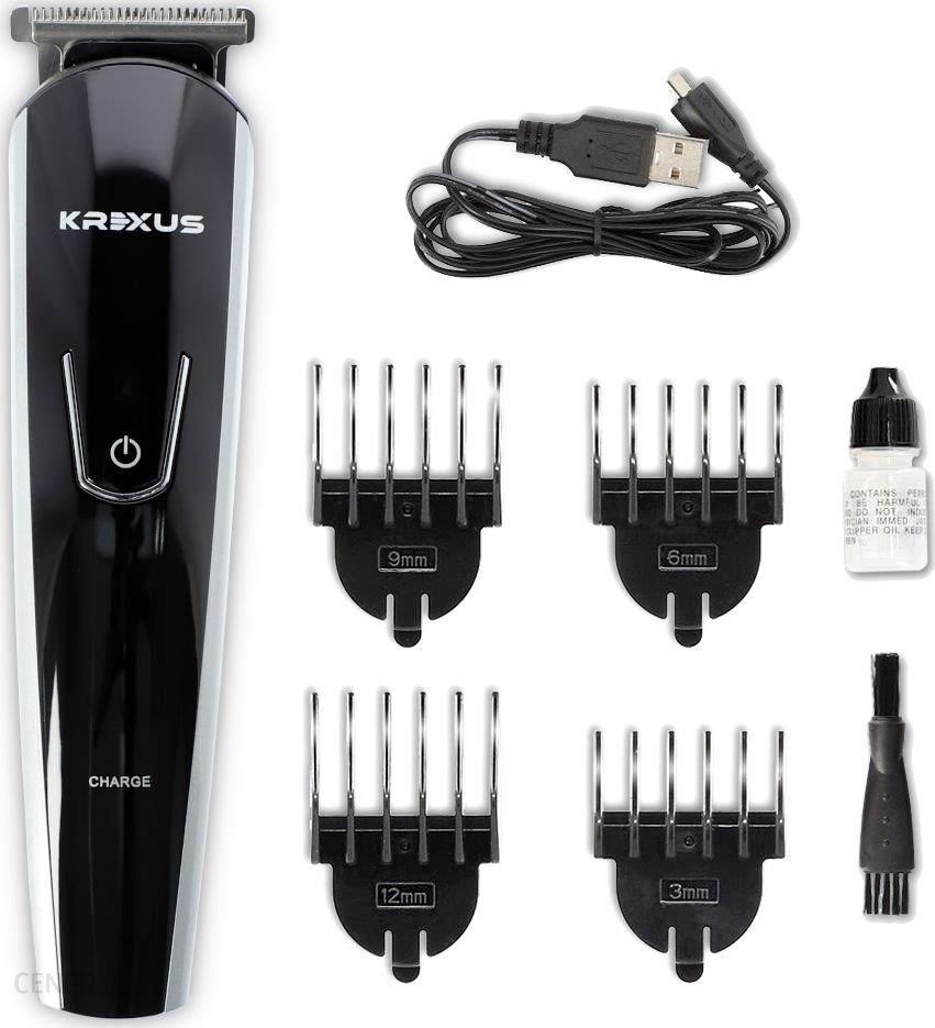 SPECYFIKACJA TECHNICZNA Czas pracy: 60 minut Maszynka bezprzewodowa Materiał ostrza: Stal nierdzewna Minimalna długość strzyżenia [mm]: 3 Maksymalna długość strzyżenia [mm]: 12 Wyposażenie: 4 nasadki, kabel do ładowania, pędzelek do czyszczenia, olej do konserwacji Uniwersalne napięcie: : 110 – 240 V, 50/60Hz, pozwalające na używanie maszynki na całym świecie Długość przewodu [m]: 1,10 Waga produktu [g]: 130 Waga produktu z opakowaniem [g]: 500 Certyfikacja: CE (LVD, RoHS, EMC), GS, DESIGN, JAKOŚĆ i FUNKCJONALNOŚĆ Trymery KREXUS są łatwe w obsłudze, dodatkowo idealnie układają się w dłoni, zapewniając perfekcyjne oraz szybkie strzyżenie. Elegancki wygląd, ciekawy design oraz funkcjonalność to główne zalety naszych urządzeń. Trymery są wykonane z wysokiej jakości, wytrzymałego materiału, dzięki czemu możesz oczekiwać najlepszych efektów przy każdym użyciu. Dzięki naszemu zestawowi posiadającemu różnorodne głowice przycinające możesz wybrać styl idealnie dopasowany do Twoich potrzeb. Maszynka KREXUS to odpowiedź na Twoje wymagania. Postaw na profesjonalne opcje wydajności i pielęgnacji. PROCES ŁADOWANIA Akumulatorowe zasilanie trymerów KREXUS pozwala na bezpieczne korzystanie z maszynek w różnych sytuacjach, także podczas podróży. Popularna opcja ładowania USB poprawia wygodę użytkowania. PROSTA KONSERWACJA = DŁUGA ŻYWOTNOŚĆ W zestawie do strzyżenia KREXUS znajdziesz olej maszynowy oraz pędzelek do czyszczenia urządzenia. Aby zachować wydajność urządzenia i utrzymać ostrza tnące w dobrym stanie, należy je regularnie oliwić, co zapewni trymerowi długą żywotność. ZAWARTOŚĆ ZESTAWU: Bezprzewodowa maszynka do strzyżenia KREXUS 4 x końcówki grzebieniowe (3 mm, 6 mm, 9 mm, 12 mm) Akcesoria: kabel do ładowania, pędzelek do czyszczenia, olej do konserwacji, instrukcja obsługi UWAGA: 1. Sprawdź czy wejście do którego podłączasz urządzenie do ładowania nie przekracza 5V. Urządzenie może ulec przegrzaniu, spaleniu lub nawet ewentualnie eksplozji jeżeli wejście jest powyżej 5V. 2. Używaj tylko oryginalnego kabla przy ładowaniu urządzenia. Używanie innego typu kabla może spowodować uszkodzenie urządzenia. 3. Jeżeli głowica trymera nie jest regularnie olejowana, może to powodować nagrzanie urządzenia przy długim użytkowaniu. Pamiętaj o używaniu oleju do konserwacji ostrzy. Staraj się oliwić urządzenie po każdym użyciu.