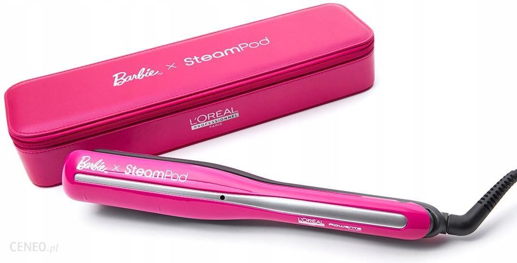Edycja limitowana! Kultowa prostownica parowa Steampod teraz dostępna w wersji idealnej dla każdej damy, w przyciągającym wzrok, neonowym kolorze r?żowym. Czas na Steampod x Barbie. Stylizuj włosy za pomocą pary i spełniaj marzenia. Od naturalnego wyglądu przez fale po idealnie proste włosy. Nawet 2 razy szybsza stylizacja. Aż 2 razy gładsze włosy. Do 91% mniej zniszczeń. Innowacyjna parowa prostownica do włos?w Loreal Professionnel Steampod pozwala na pielęgnację i stylizację włos?w za pomocą pary. Para wodna emitowana przez urządzenie sprawia, że włosy są gładkie, odczuwalnie miękkie, wyglądają naturalnie i zjawiskowo. Dodatkowo zapewniona jest ochrona ich koloru. Stylizacja parą wodną przekłada się na gładsze włosy, szybsze modelowanie i znacznie mniej uszkodzeń włos?w niż podczas stosowania tradycyjnych prostownic. Urządzenie jest poręczne i łatwe w obsłudze – idealne dla fryzjera i do użytku domowego. Rotacyjny kabel ułatwia stylizację. Dodatkowe ułatwienie to zintegrowany zbiornik na wodę. Pełny zbiornik wystarczy na pełną stylizację włos?w grubych i długich oraz 2-3 użycia w przypadku włos?w kr?tkich. Zaokrąglone końce prostownicy Steampod pozwalają na kręcenie lok?w i fal – to urządzenie jest naprawdę wszechstronne. Para wodna zapewnia wilgotność włos?w, nie zabiera z nich wilgoci jak klasyczna prostownica, dzięki czemu włosy nie puszą się nawet przy wyższej wilgotności powietrza. Dodatkowo podw?jna technologia płytek: powłoka o wysokiej odporności i struktura płytek umożliwiająca płynne ruchy z odpowiednim naciskiem na włosy. Urządzenie jest wyposażone w system kontroli ciepła: 3 opcje ustawień ciepła od 180?C do 210?C.? Właściwości prostownicy parowej Loreal Professionnel Steampod 3.0: edycja limitowana Barbie&Steampod ekspresowa transformacja wyglądu włos?w: wygładzenie, nawilżenie, poprawa mi?
