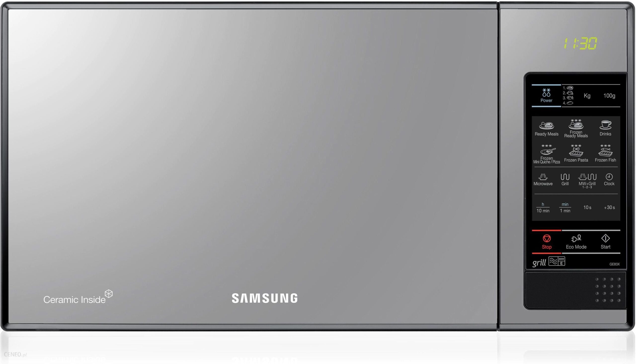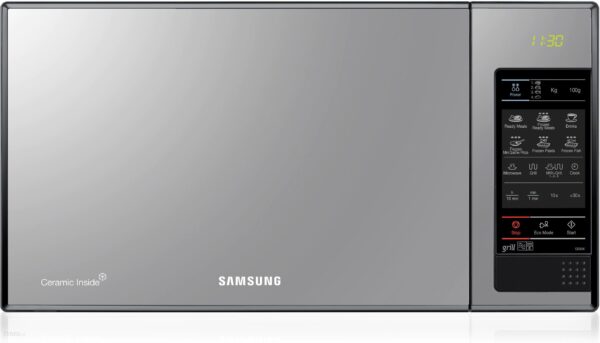 Lustrzany design kuchenki Samsung dopełnia wkomponowany wyświetlacz LED. Panel sterowania jest dotykowy z opisem poszczególnych przycisków co zapewnia prostą i intuicyjną obsługę. Co więcej, ekran urządzenia śledzi ruchy palca przez co sterowanie jest jeszcze łatwiejsze i wygodniejsze.